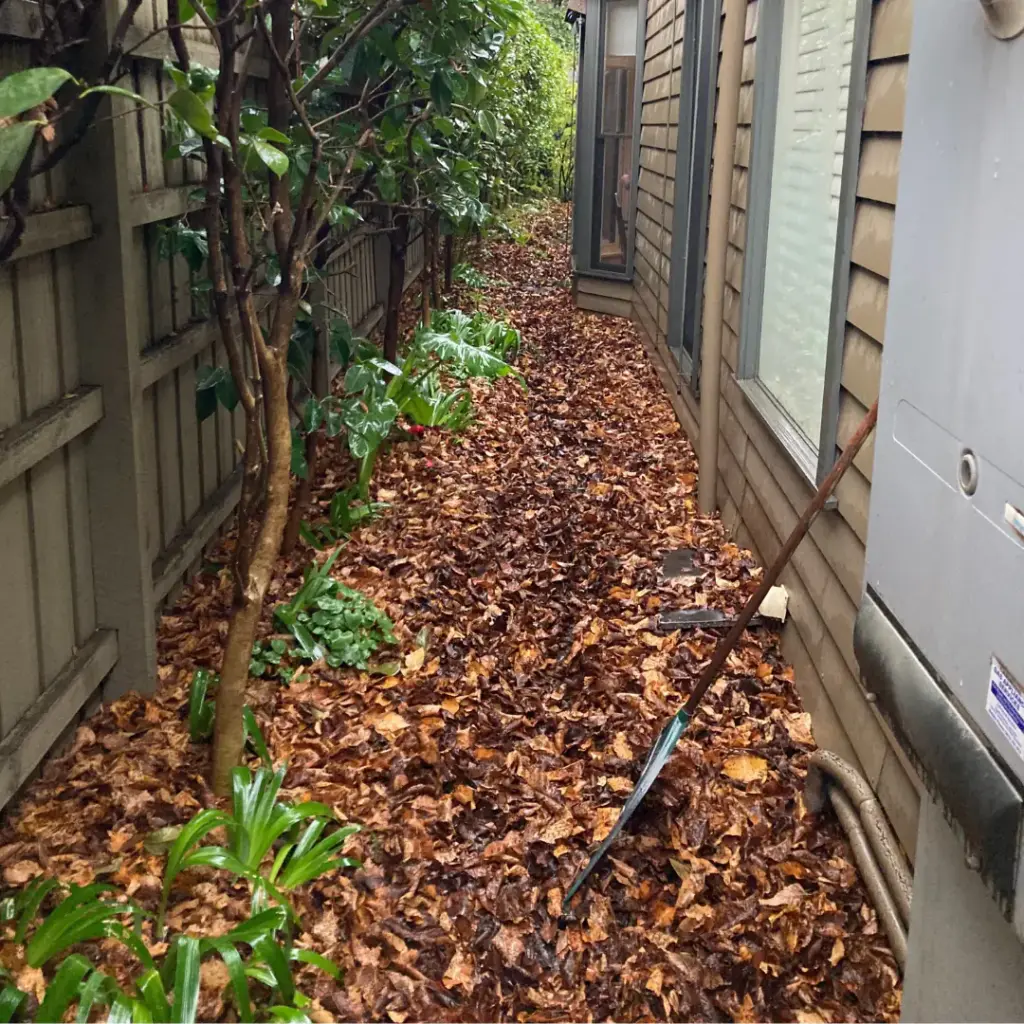 Clearing garden waste, including leaves, branches, grass clippings, and general debris.